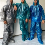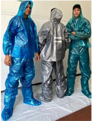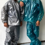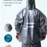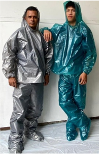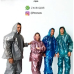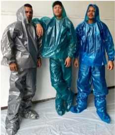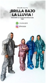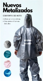 Impermeable Metalizado calibre 2,5 tres piezas. Chaqueta con cintas reflectivas grandes atrás, Resorte en los puños, Pantalon con resorte en la cinta y horma de pantalon, haciendo de esta una prenda ergonomica, vestidora y resistente